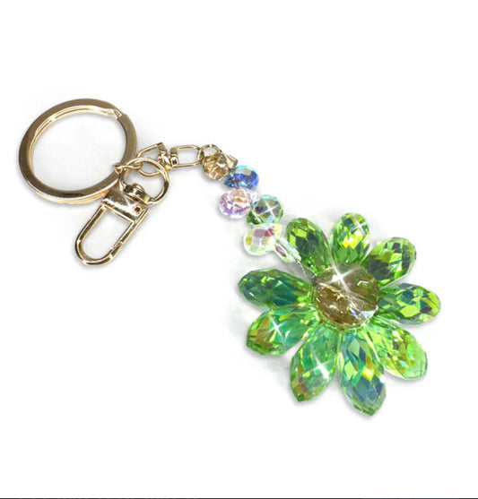 1 Jacqueline Kent Green Flower Power Crystal Daisy Purse Charm Keychain