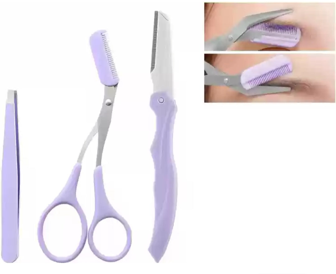 3 Piece Eyebrow Trimming Tool. Stainless Steel Eyebrow Tweezer, Eyebrow Scissors With Comb and Eyebrow Razor