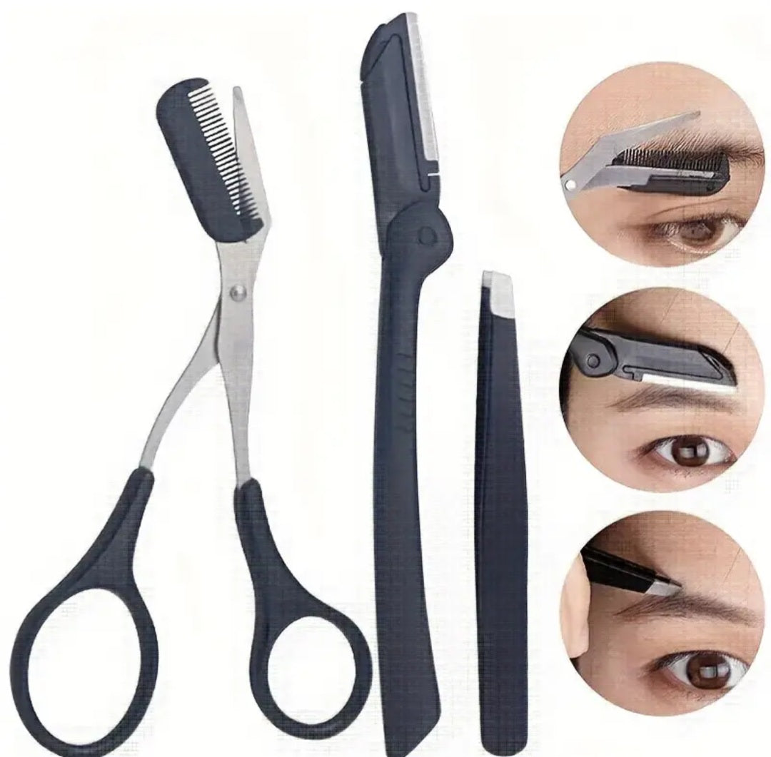 3 Piece Eyebrow Trimming Tools. Stainless Steel Eyebrow Tweezer, Eyebrow Scissors With Comb and Eyebrow Razor