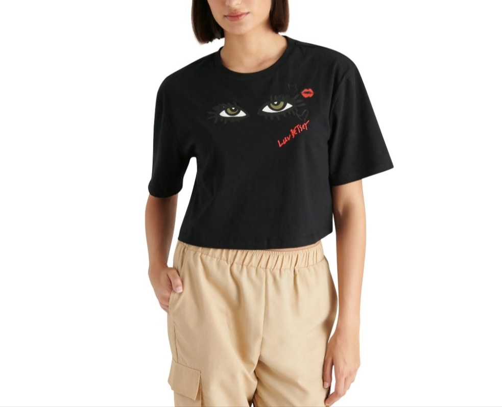 9b Betsey Johnson Women's All Eyes on Me Cropped Tee- EXTRA SMALL
