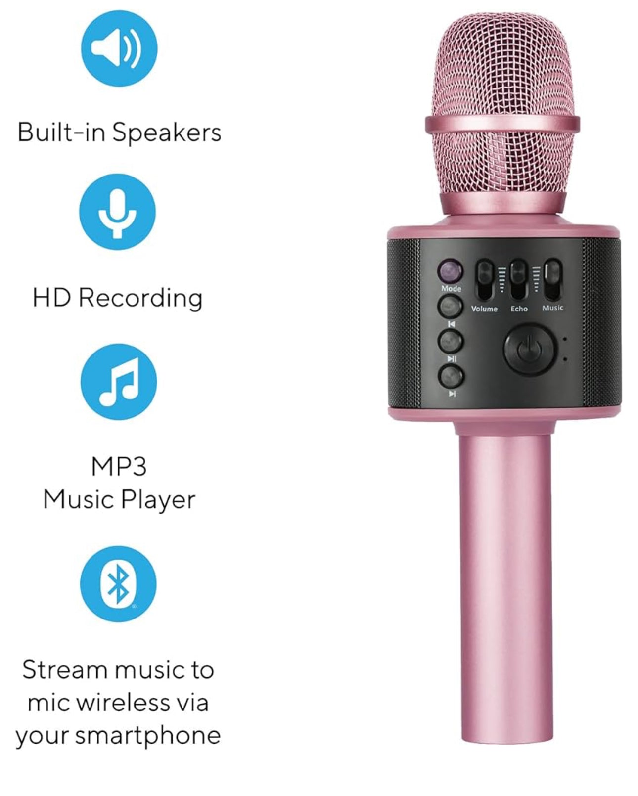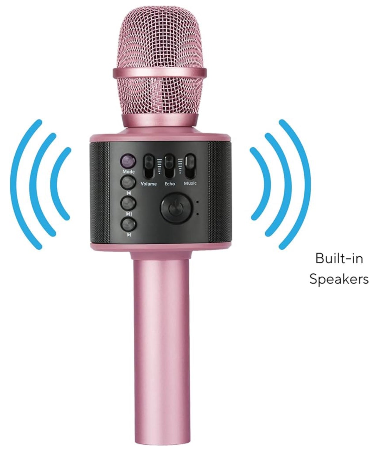 Core Innovations Wireless Bluetooth Karaoke Microphone with Built-in Speakers + HD Recording, Portable Handheld Mic | Rose Gold