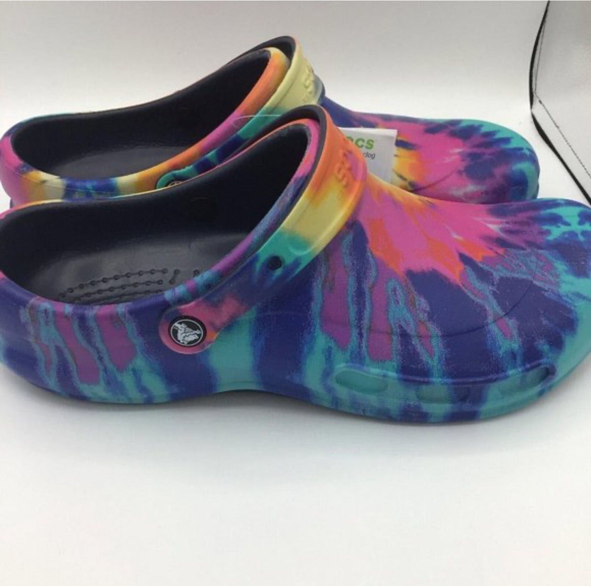 9c Crocs Bistro Graphic Clogs Rainbow Tie Dye Sandals Men’s Size 12-BRAND NEW