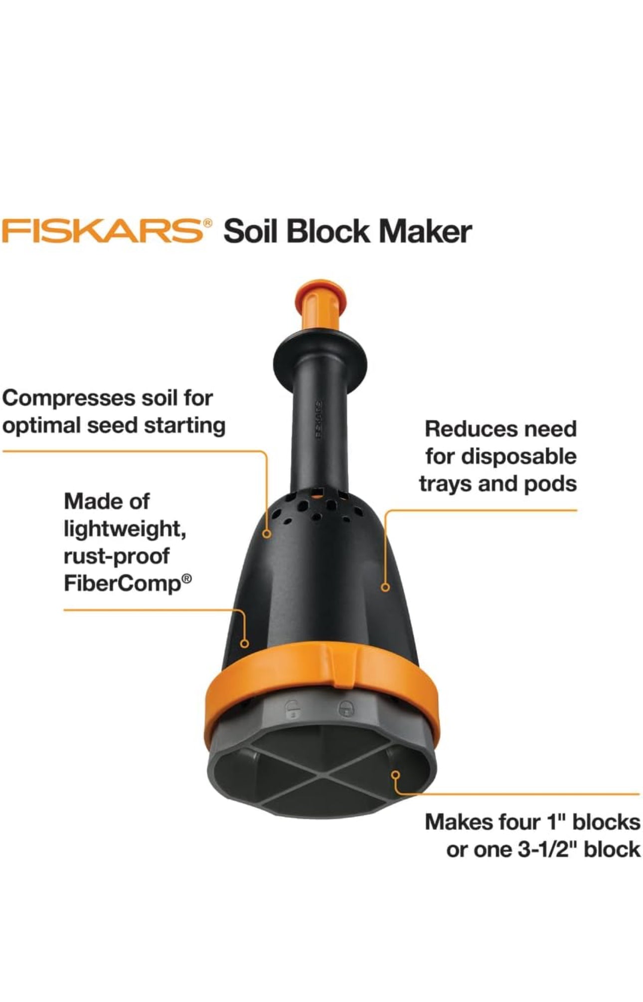 Fiskars Soil Block Maker for Garden Seeds with Natural Air Pruning, Eco Friendly Soil Blocking Gardening Tool for Germinating Seeds