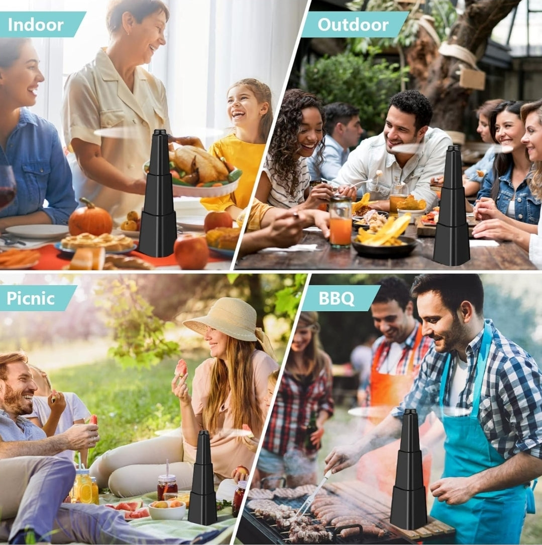 Say goodbye to pesky flies and hello to uninterrupted outdoor enjoyment. Install 2 AA batteries, and the fly fan will spin and the holographic reflective pattern on the blades will bend the light to drive the flies away, and you can enjoy your food and drinks freely.