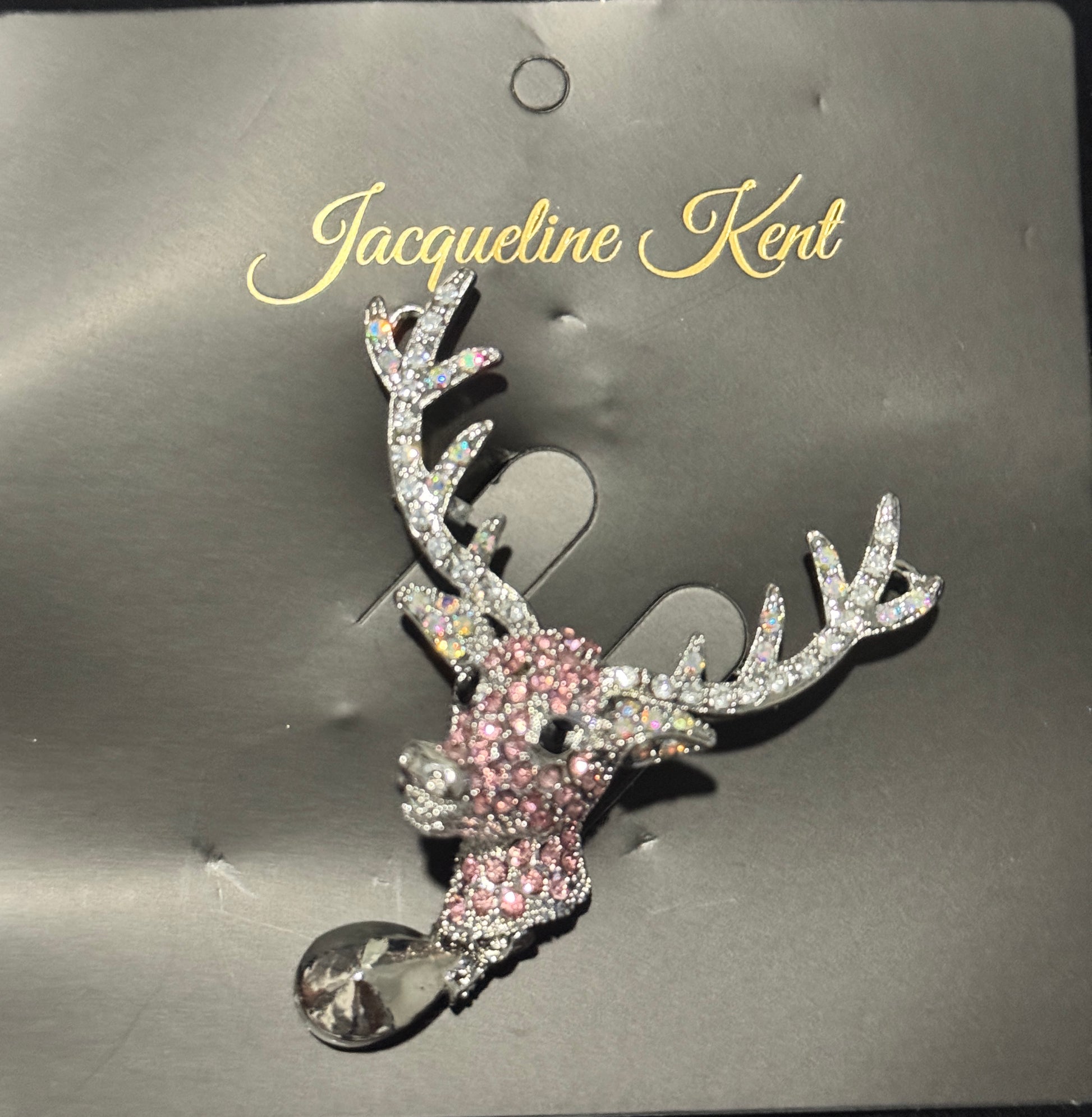 1 Jacqueline Kent Pink Crystal Reindeer Brooch Pin