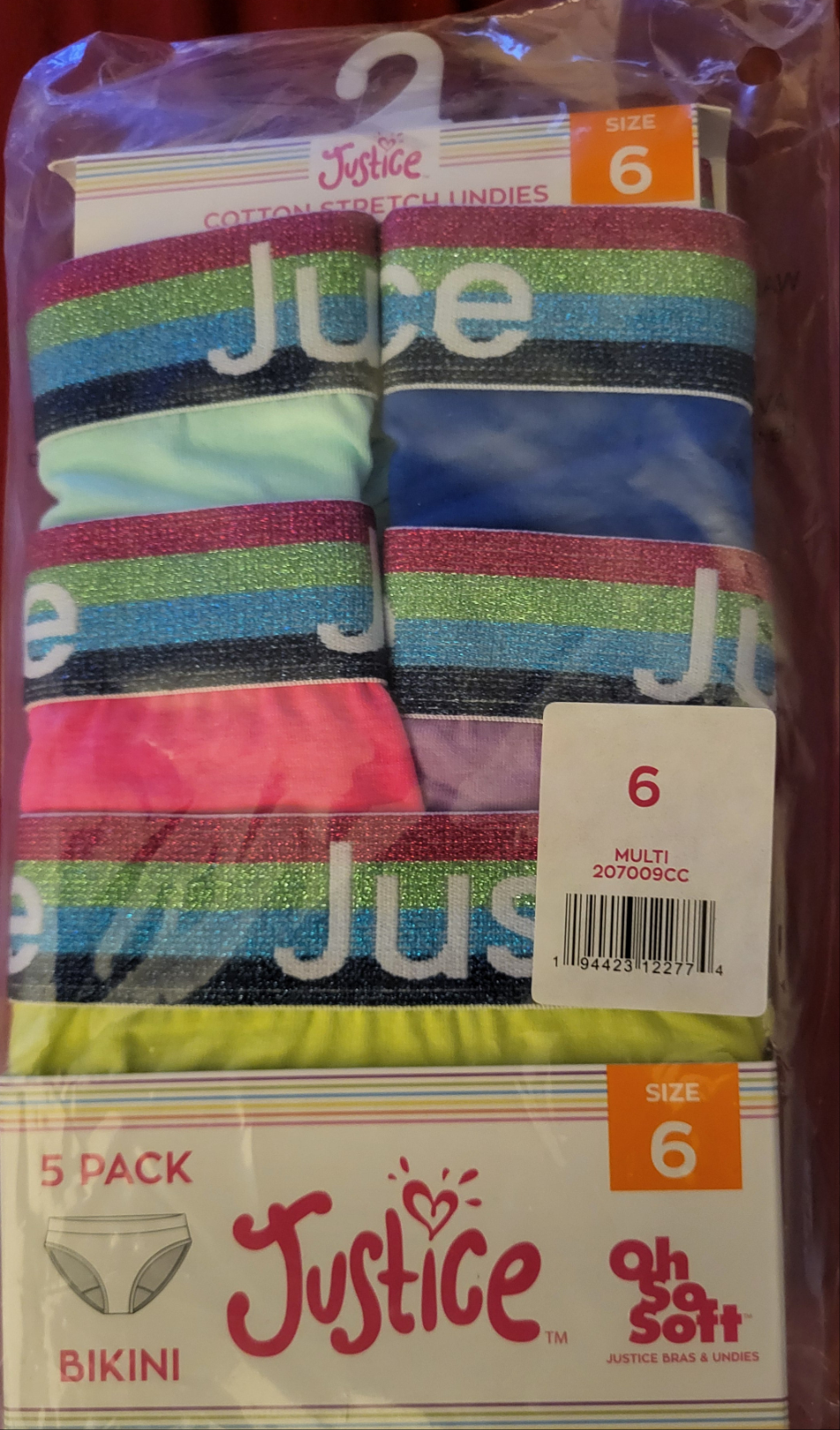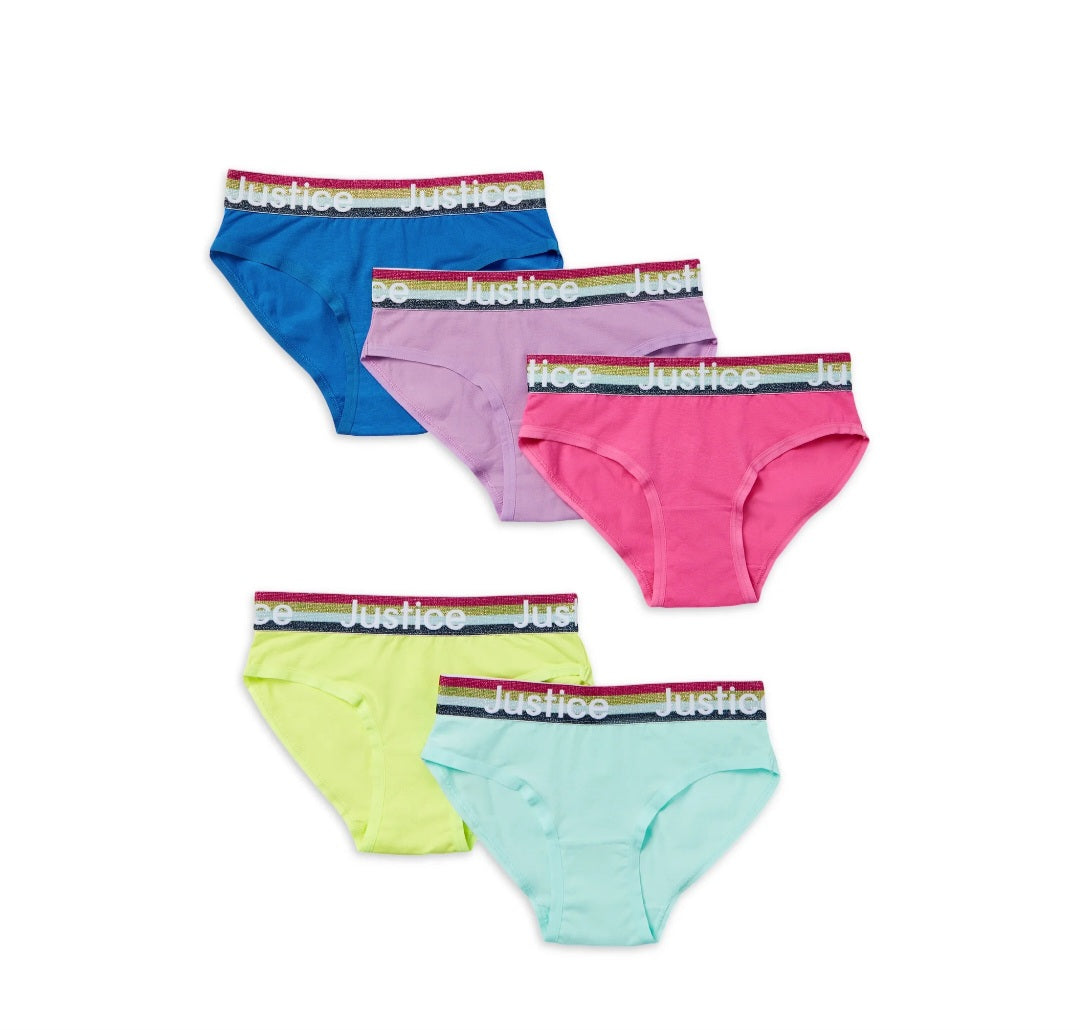 9b0 Justice Girls Oh So Soft Logo Elastic Bikini Underwear, 5 pack, Sizes 6