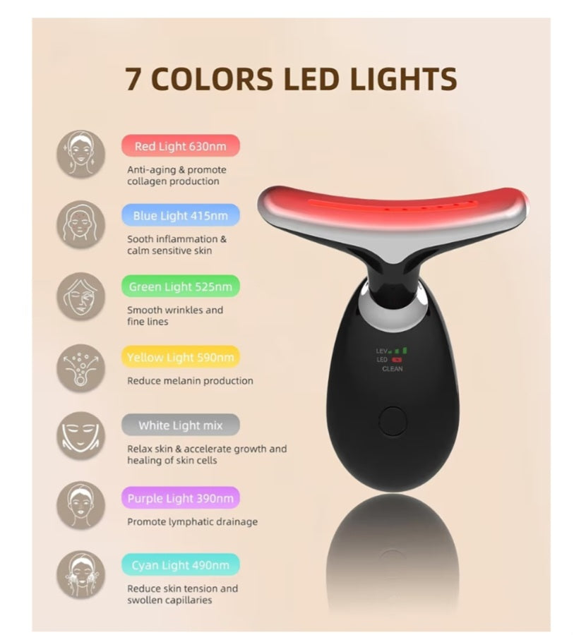 7 Color Face Light Therapy - The facial massager for face and neck is not just a skin care tool but a double chin reducer. The uniquely arched massager fits well and glides smoothly on your skin, helping to enhance the absorption of skincare products.