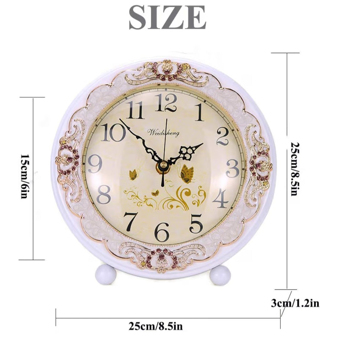 BEAUTIFULLY DESIGNED: The vintage European style table clock looks elegant and Exquisite. It’s great for living room, Bedroom, Classroom, Library, Office, Home and etc.It 's also a perfect gift.