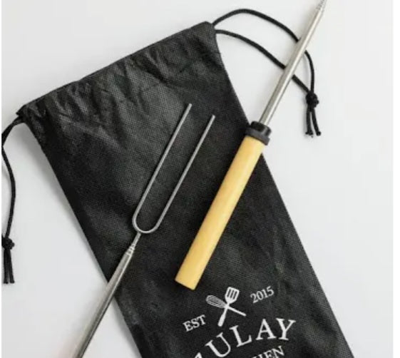 These Telescopic Marshmallow Roasting Sticks are made of non-toxic heat-treated 304 Stainless Steel. The rods and tubes are arc-welded in place with a prong distance of 1.18 inches for optimal roasting.