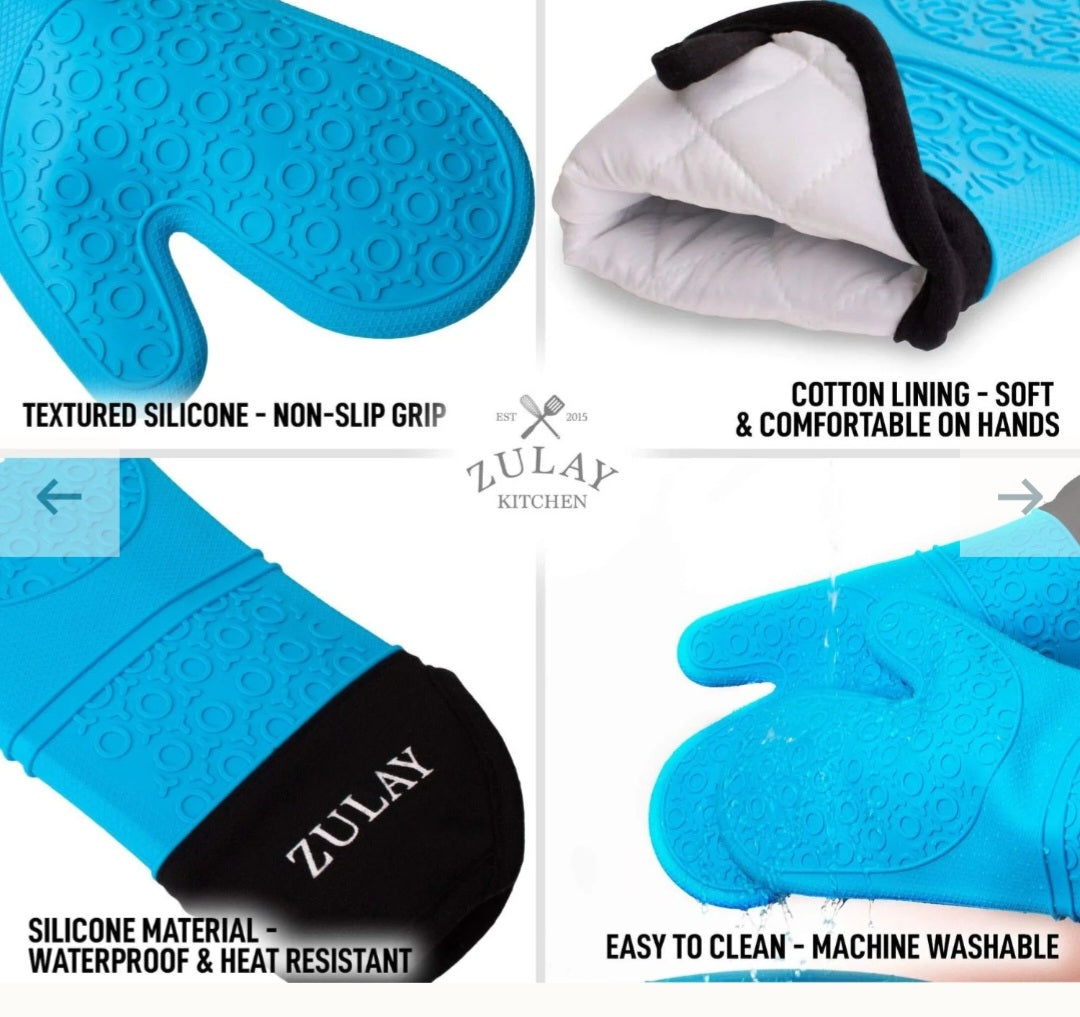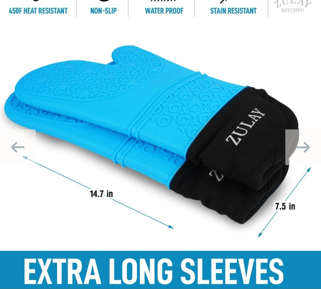 Zulay Kitchen Silicone Oven Mitts -2 piece! Made from premium quality BPA free silicone that guarantees to withstand heat up to 450 Fahrenheit. Set includes 2 pcs of oven mittens.