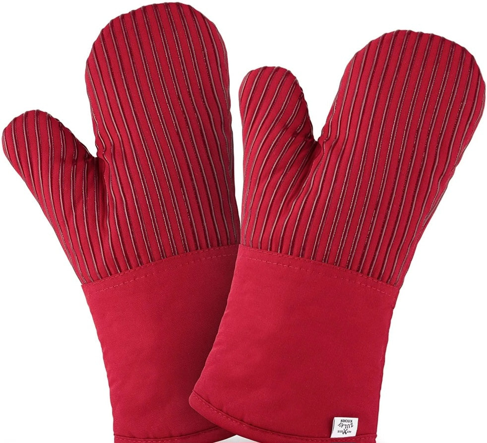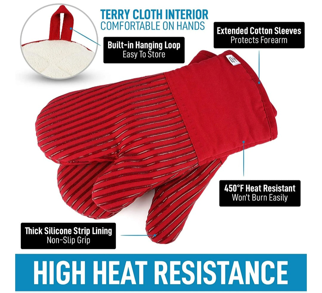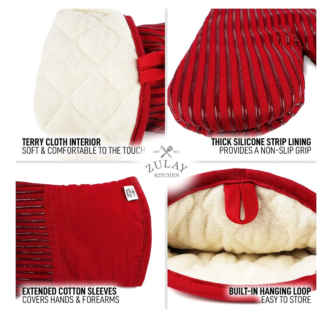 4 Zulay Kitchen Silicone Oven Mitts Red Stripes-2 piece